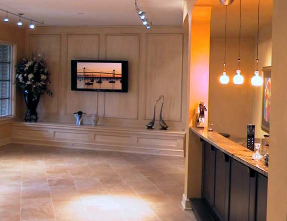 This installation provides video and audio distributed around a large open bar / reception area. The speakers were to be as unobtrusive as possible and the television controlled easily by a master universal remote.