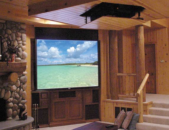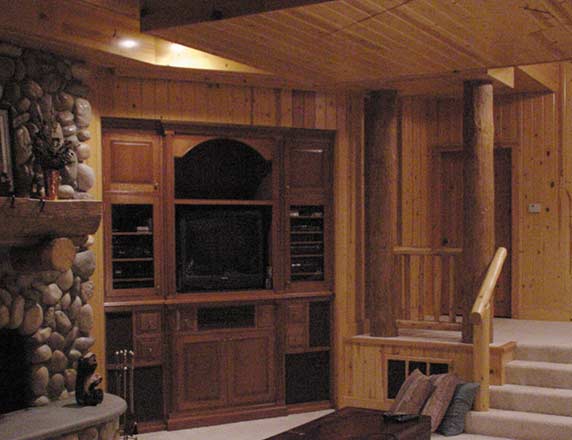 The client wanted to preserve the rustic cabin, yet still enjoy his video collection. We specified an Inca brand lift system. We also performed all the construction work.