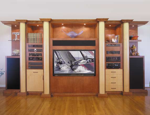 The client is a connoisseur of fine furniture and wanted something that would complement his home and integrate all the electronics in one unit. We worked with the custom furniture builder to ensure the dimensions of the equipment and proportions were perfect.